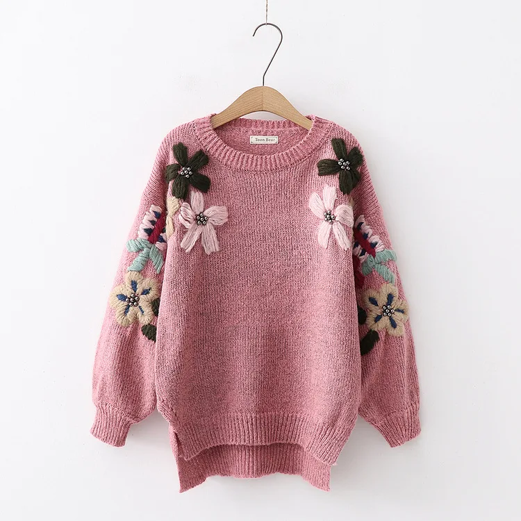 Best Offer of Autumn and winter new Sen Department Fresh Flower beaded pullover sweater wild women's sweater
