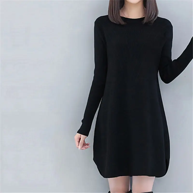 Good Chance of Autumn Winter Women Sweater A-line Loose Casual Mini Knitting Dress For Ladies O-neck Long Sleeve P